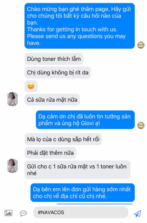 Thật sự từ trước tới nay, Chị chưa ưng một dòng Toner nào ngoài Navacos. Dùng không bị rít da, giữ ẩm cũng rất tốt. Cứ mỗi lần rửa mặt xong mà không dùng ” em nó” là chị cứ thấy thiếu thiếu. Quen dùng sản phẩm của Navacos rồi! Rất hài lòng!